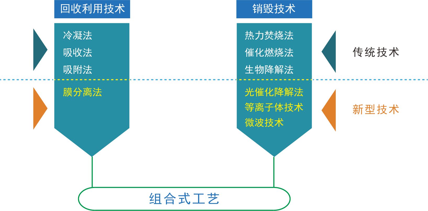 末端治理技術(shù)則是從排放端出發(fā),采用回收利用與焚燒銷毀兩種技術(shù)對(duì)排放到大氣的VOCs進(jìn)行預(yù)處理,使其達(dá)到排放標(biāo)準(zhǔn),有效改善區(qū)域大氣環(huán)境。